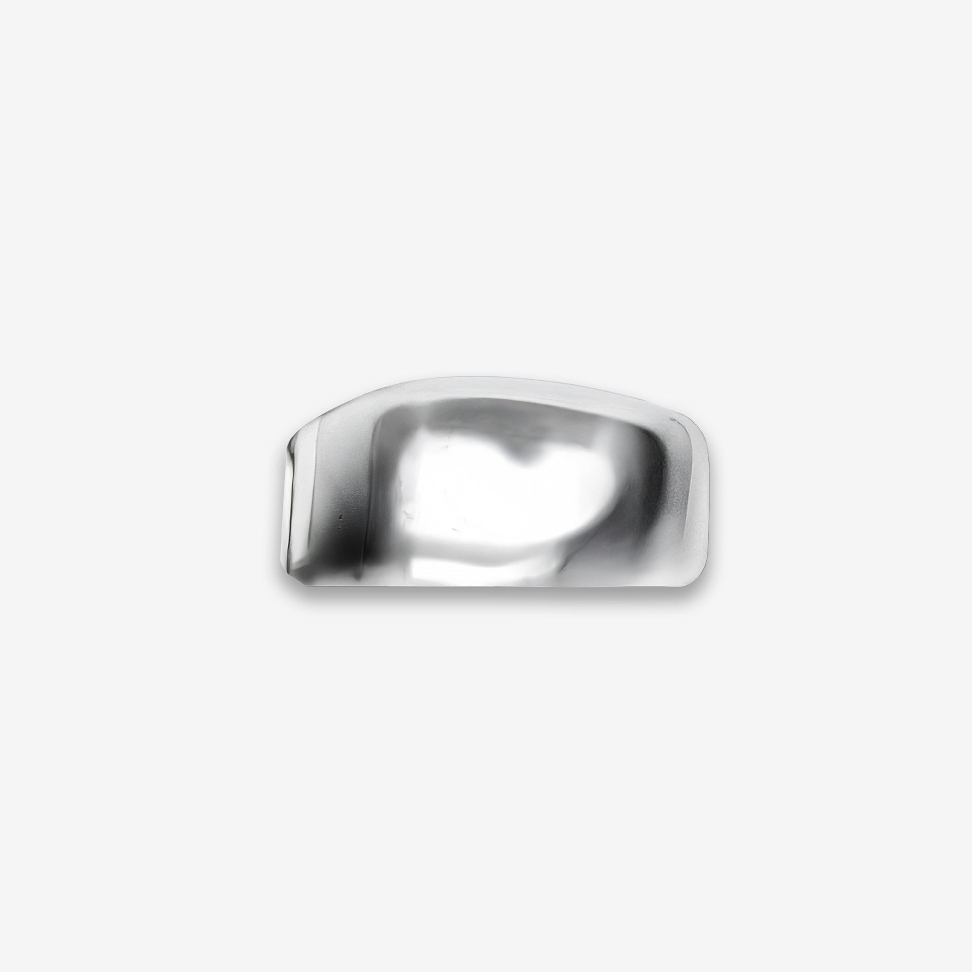 A dome shaped solid silver ring with a liquid surface texture, inspired by the unique shapes of water.