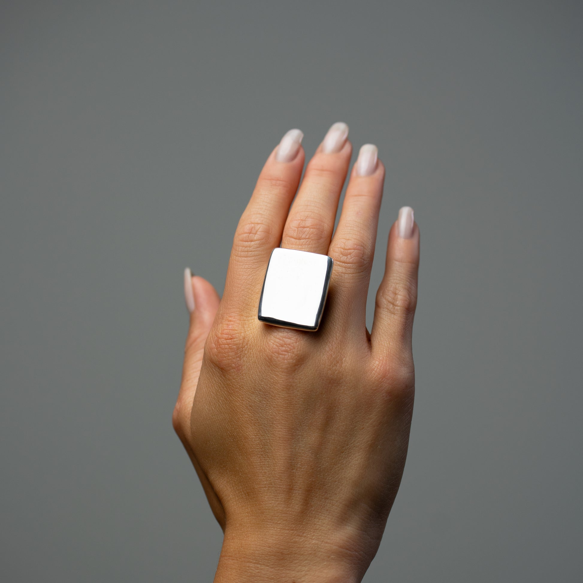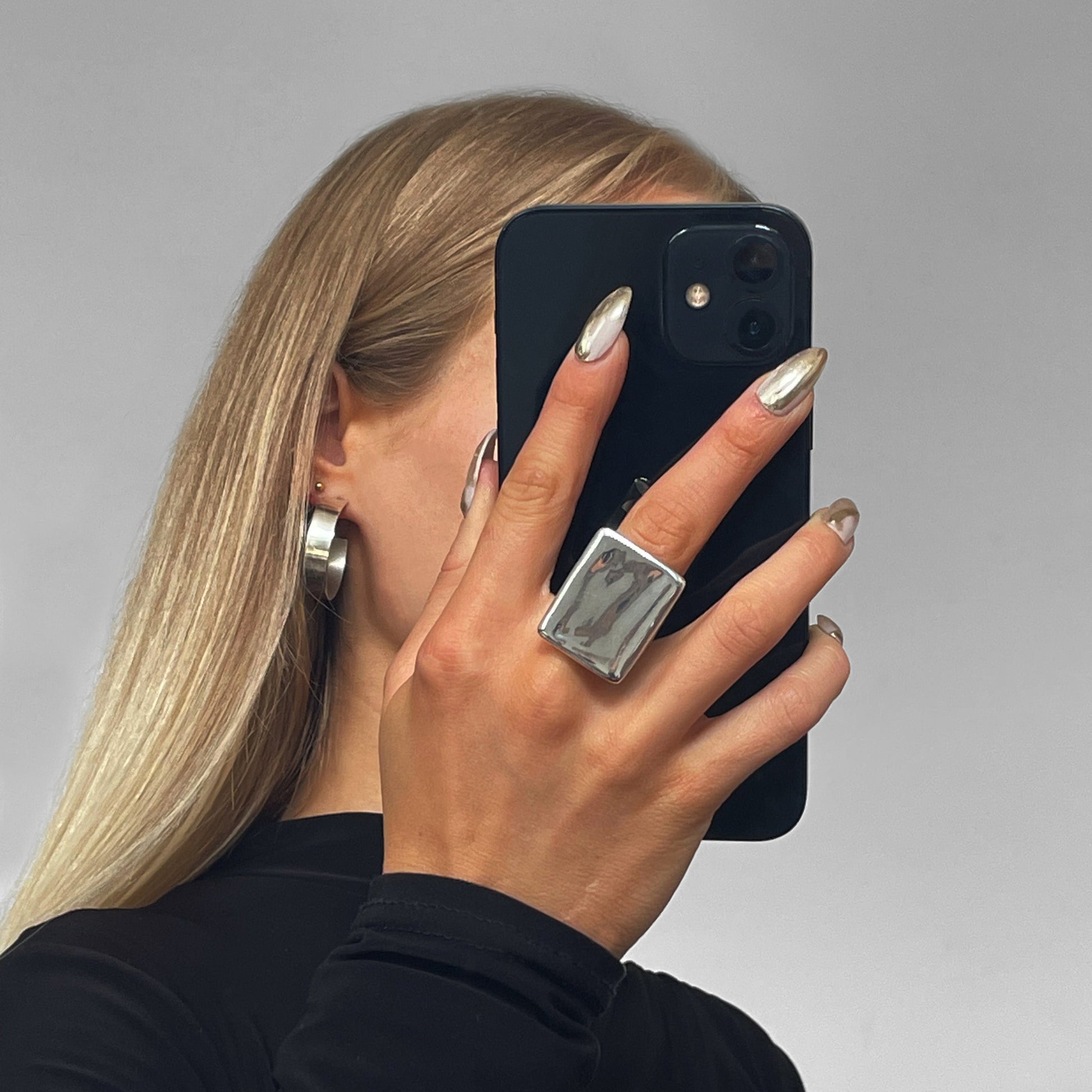 The ultimate statement ring. This ring is inspired by the liquid surface of water of ice cubes melting. Due to the wrap around style it sits slightly higher on the finger, making it incredibly comfortable to wear for long periods of time despite the size.
